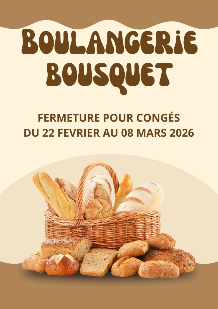 FERMETURE BOULANGERIE POUR CONGÉS DU 22 FÉVRIER AU 8 MARS 2026