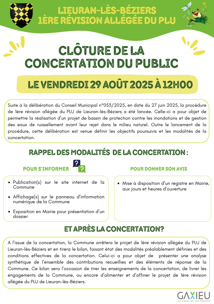 1ère RÉVISION ALLÉGÉE DU PLU – CLÔTURE DE LA CONCERTATION DU PUBLIC